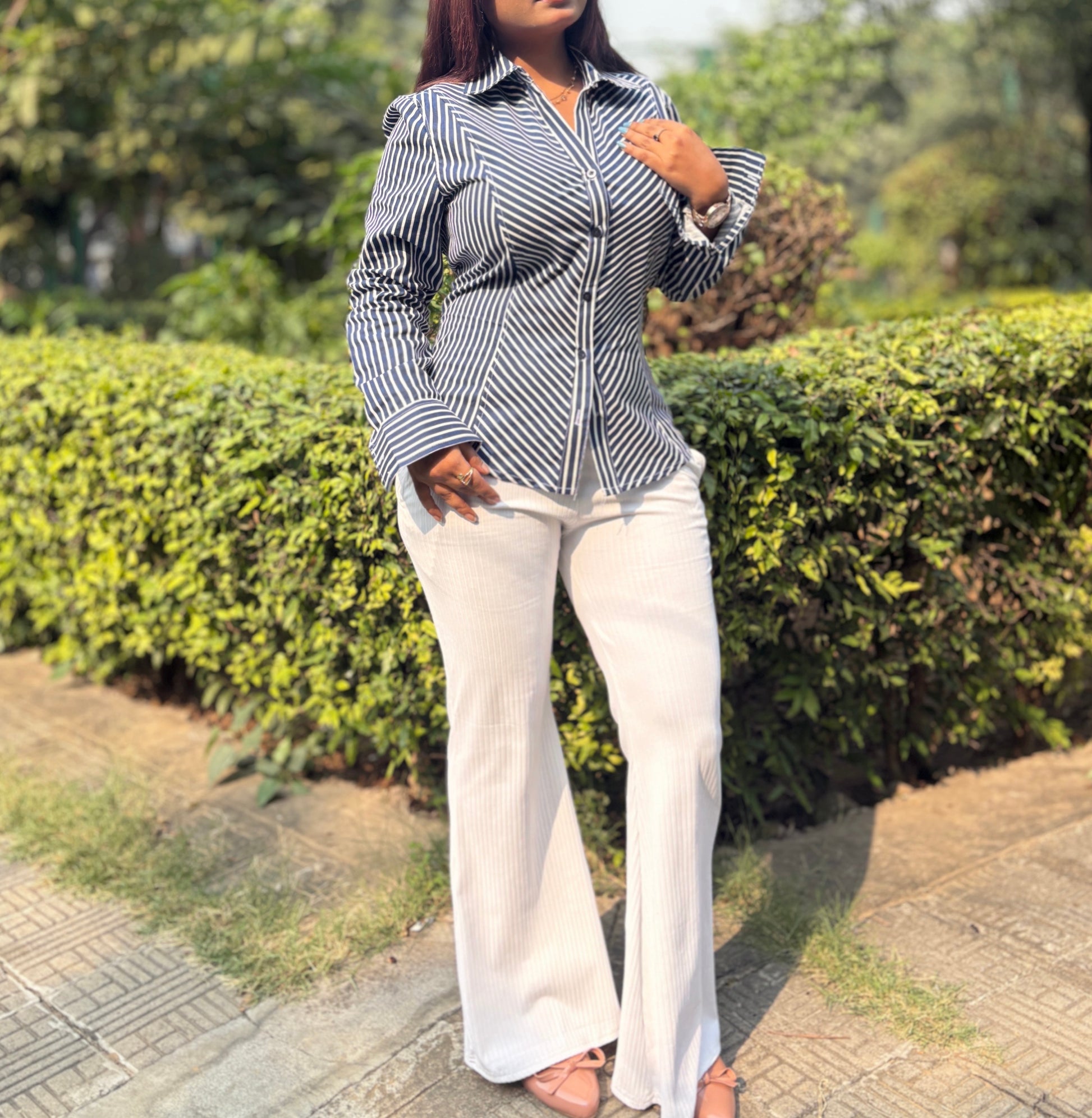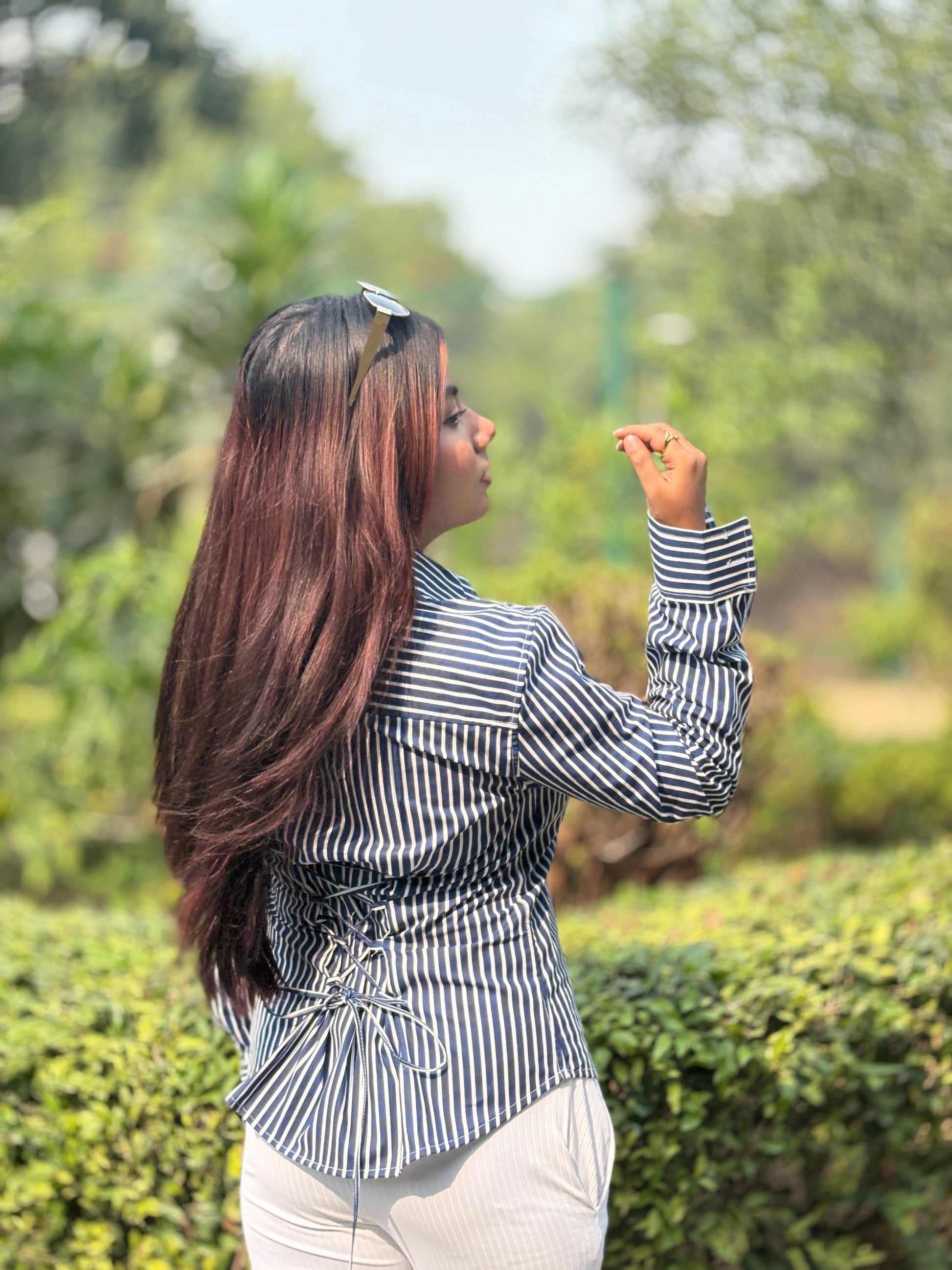 Indo-Western Corset back/ Lace-up back collared full sleeve Shirt/Tops.